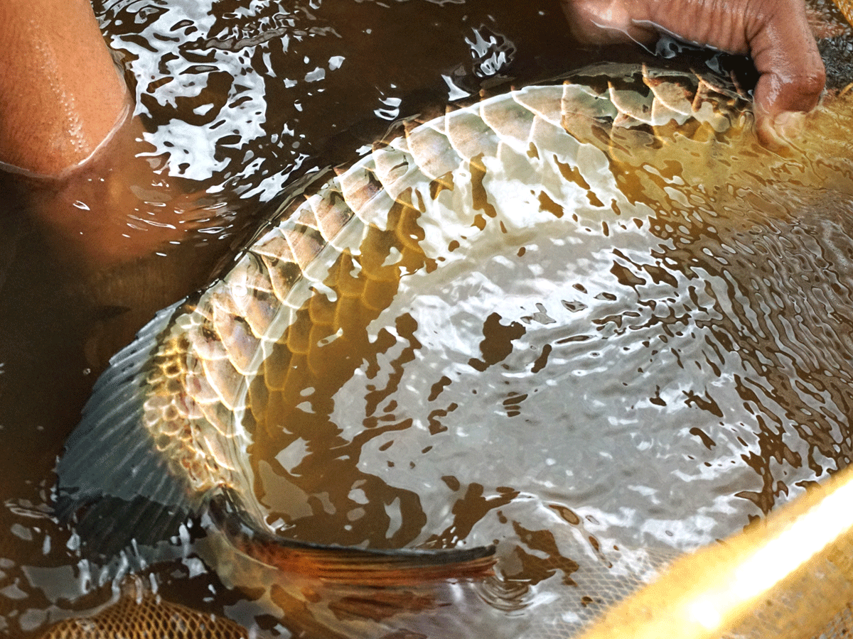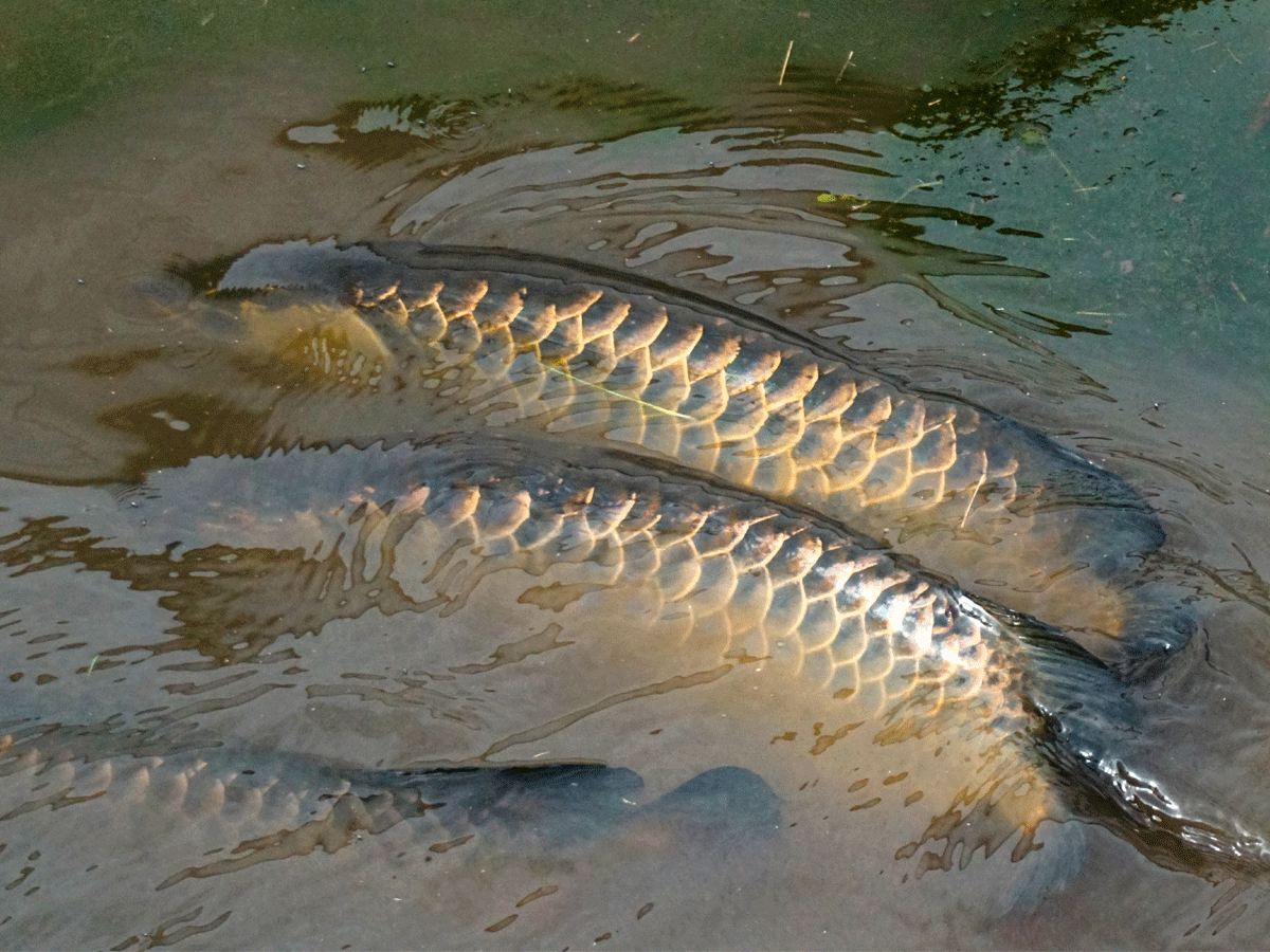 We carefully chose the groups of high quality and pure-breed adult Arowanas as the brood fishes. The brood fishes will keep in the large earthen ponds, they will paired up naturally in times.