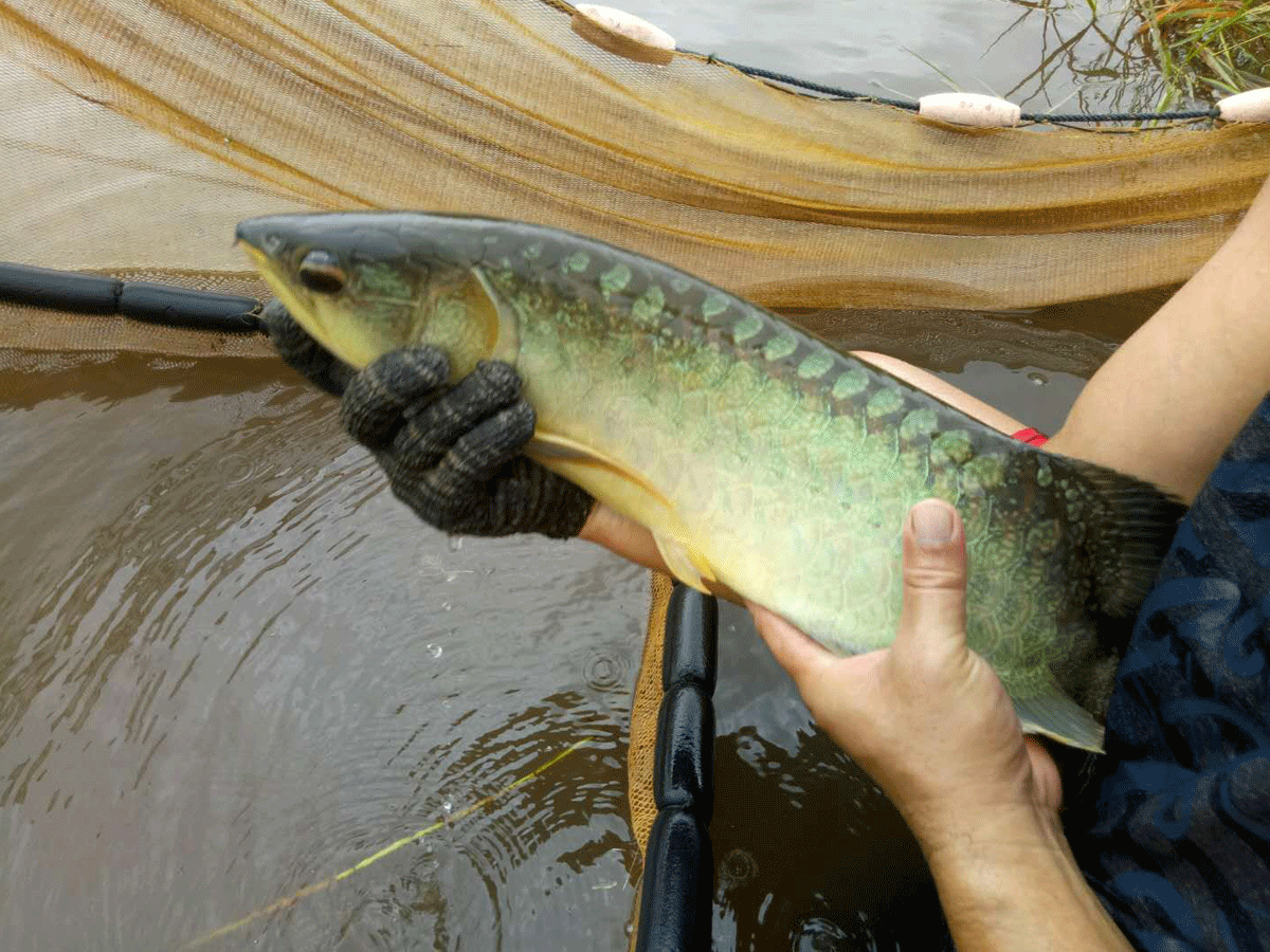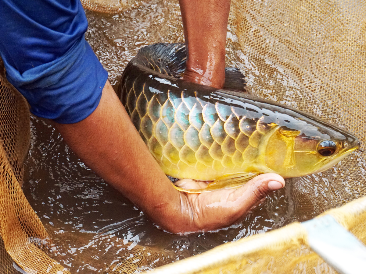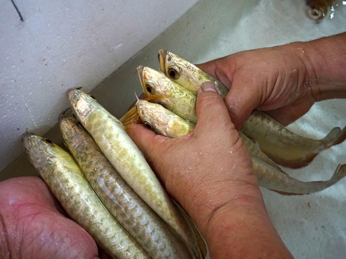 We carefully chose the groups of high quality and pure-breed adult Arowanas as the brood fishes. The brood fishes will keep in the large earthen ponds, they will paired up naturally in times.